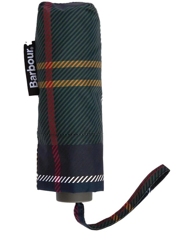Stay stylish and protected from the elements with the Barbour Tartan Umbrella With UV Protection. This compact and telescopic brolly features a classic tartan pattern, adding a touch of sophistication to any rainy day. The black coating on the inner canopy provides essential sun protection, ensuring you're covered whatever Mother Nature may have in store. Ideal for city commutes or countryside strolls, this practical and elegant umbrella fits easily into your bag, making it a must-have for the unpredictable weather.