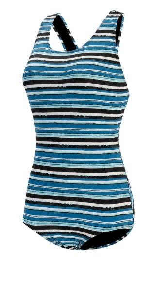 Discover effortless confidence in the Harbor print conservative one piece swimsuit. Its figure-flattering design enhances your natural beauty, while its durability is ensured through resistance to chlorine and pilling, along with shape retention and stretch recovery. Engineered to fit snugly to your body, it withstands long hours in the water, making this the perfect suit for all of your water fitness activities.