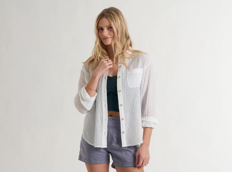 The MARLIE™ Long Sleeve Shirt delivers breathable coverage with an easy, lived-in feel. Its lightweight woven fabric features a soft crinkle texture and a touch of stretch for all-day comfort. A back yoke pleat and a hi-low curved hem create an easy drape, finished with classic button-front styling.