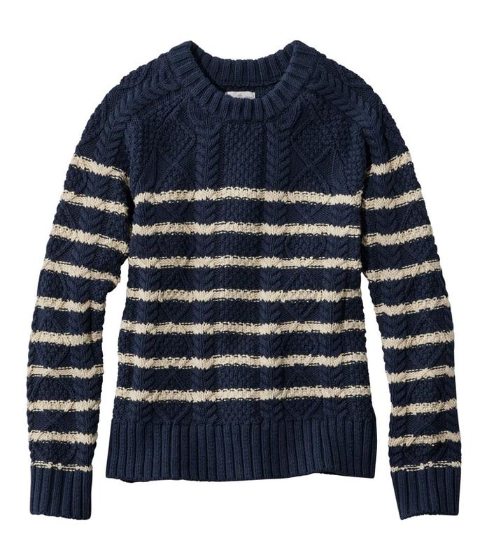 Our twist on a classic, with authentic Aran Island cables and nautical stripes. This timeless crewneck sweater is made from crisp cotton yarns that are substantial and reach further into the seasons.