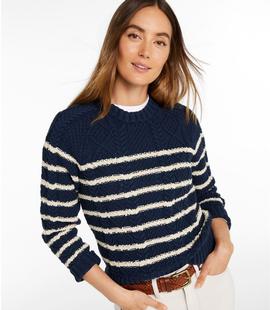 L.L.Bean Women's Signature Cotton Fisherman Sweater, Crewneck Stripe