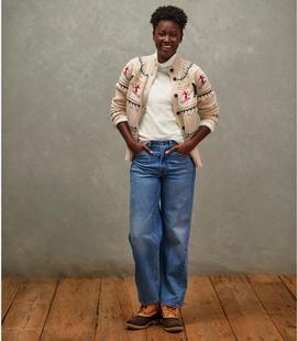 A new twist on a nautical tradition, our Irish fisherman cardigan sweater features a flattering shorter length and a more fitted style. In soft cotton yarns, with a beautiful open-stitch fair isle pattern.