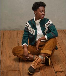 L.L.Bean Women's Signature Cotton Fisherman Sweater, Short Cardigan Fair Isle