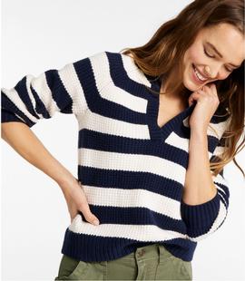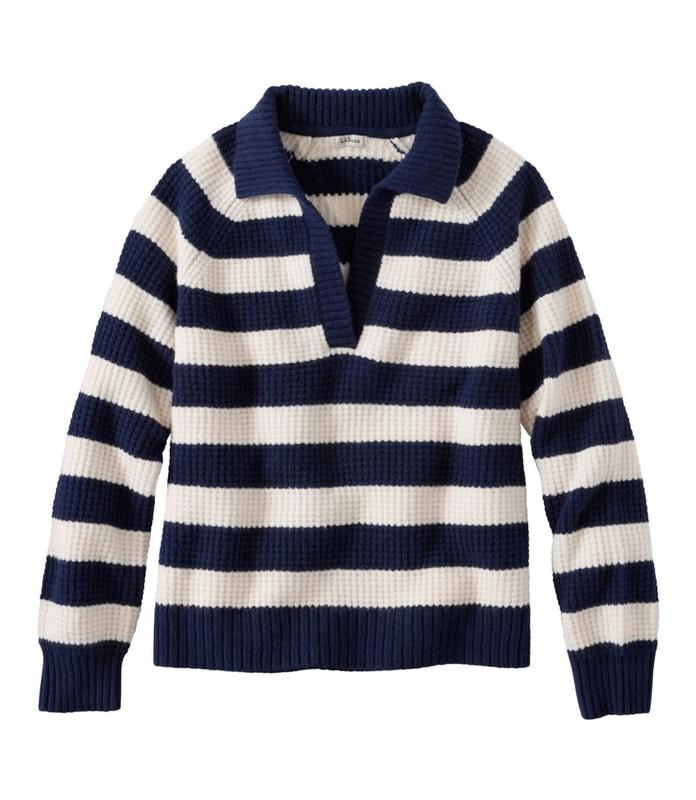 With cozy texture and an airy, almost bouncy feel, this is our softest waffle - in a striped polo sweater designed to stand out.