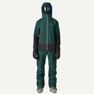 Adjustable powder skirt can be cinched for a tight seal or lies flat when not in use; a webbing loop at the center back connects to any Patagonia® Snow pants