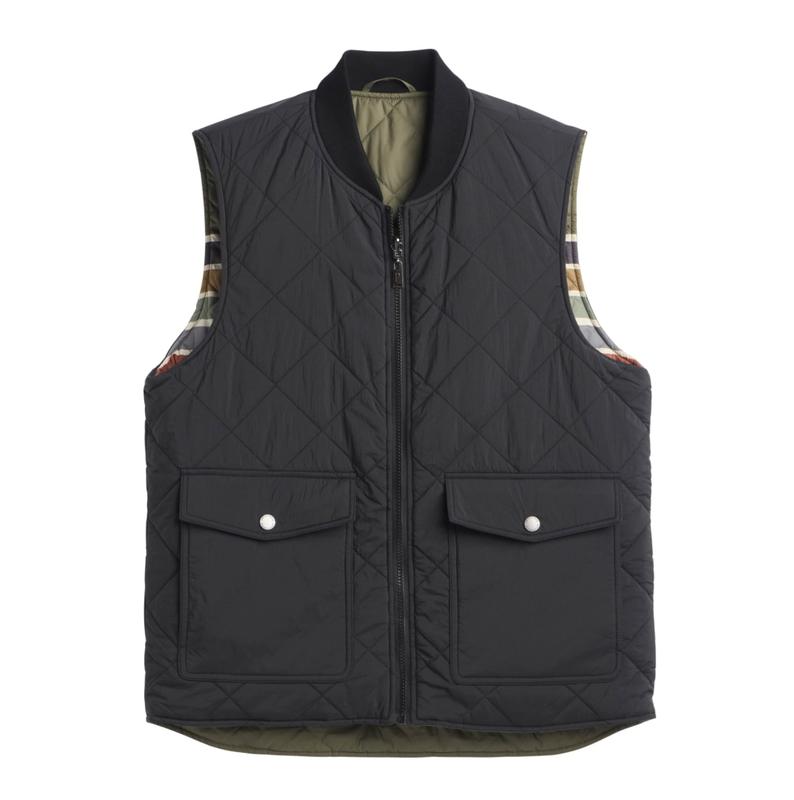 This quilted vest is perfect for your next outdoor adventure. With one solid side and one patterned side, this ideal layer offers two looks in one. Features a knit baseball collar, a zip closure, zip welt pockets on the patterned side, and snap-flap pockets on the solid side. Ideal for layering, travel, or transitional seasons.