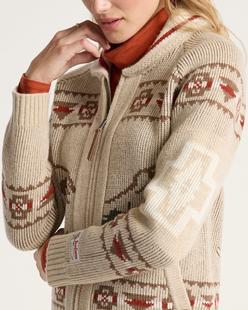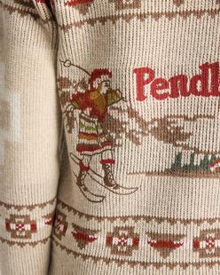 Inspired by Nordic knits, this zip-front cardigan is crafted from soft lambswool with a shawl collar and ribbed trim for structure. A continuous scenic skier motif across the back adds heritage character, while angled pockets bring functionality. A vintage-inspired woven label detail at the sleeve completes the look.