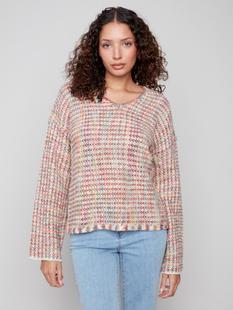 Novelty Yarn Melange Crochet Drop Shoulder Sweater