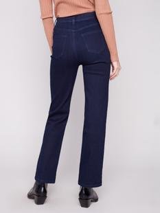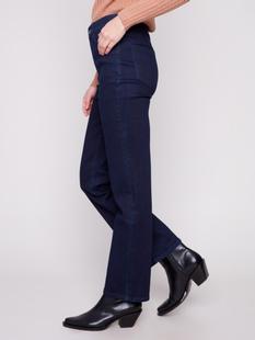 Straight Leg 5 Pocket Stretch Denim Pants With Elastic Inside Waistband