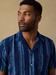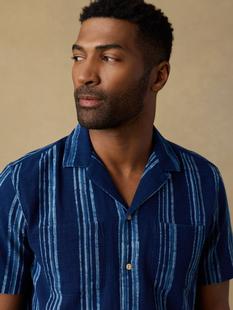 Faherty Men's Short- Sleeve Indigo Camp Shirt - Northern Blue Indigo Stripe