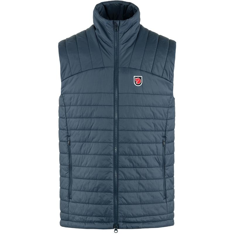 Light and packable vest for trekking and various outdoor escapes. A smart insulating garment that is perfect as a mid-layer on chilly summer evenings, when trekking at high altitudes or over a fleece or t-shirt to keep your core warm. Made from pliant recycled polyamide with synthetic padding that keeps its warming properties even when damp. Part of Fjällräven's Expedition Series.