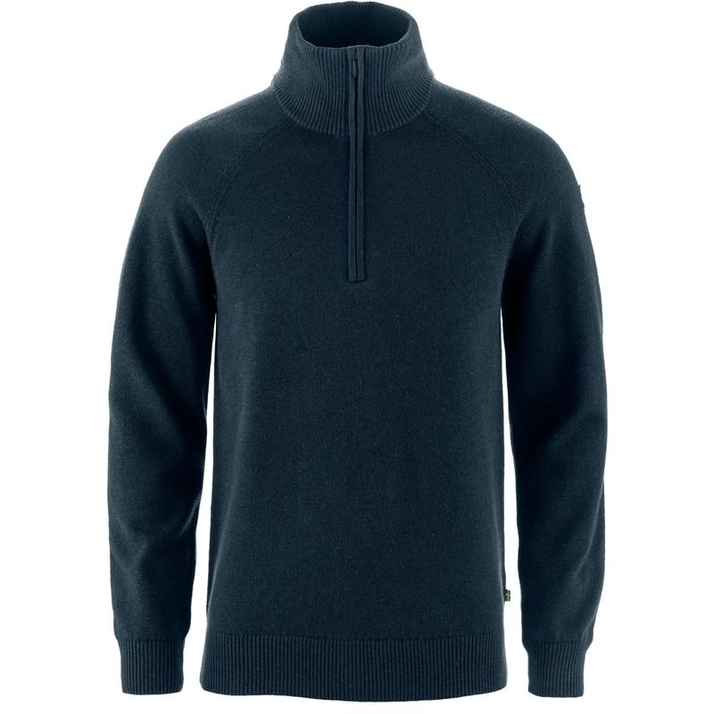 Comfortable, lightweight sweater in a ZQ merino wool/organic cotton blend that combines the moisture-wicking and temperature-regulating properties of wool with the softness of organic cotton. Övik Lite Half Zip sweater for men is the perfect shoulder-season garment that will keep you warm and comfortable outdoors. The generous zipper makes it easy to put on and take off and the medium-high collar will keep your neck warm.