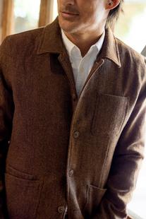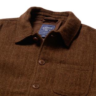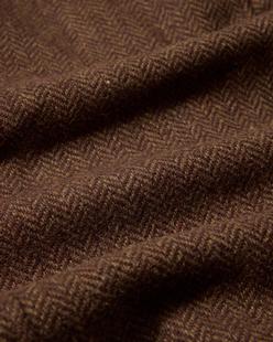 Our rendition of the classic British tweed made in a mid-century French industrial jacket. We used classic tweed wool weaving techniques to develop these special mottled yarns into a rich herringbone of seasonal chestnut browns. Inspired by an original 1930's French industrial jacket, our version is made for the dress casual moments.
