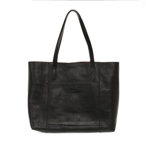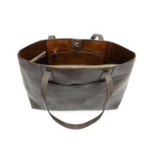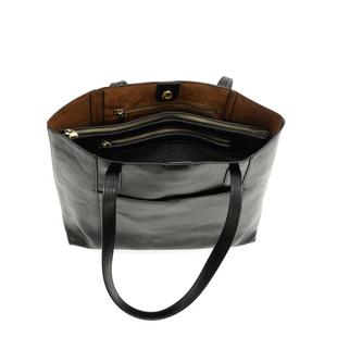 The perfect tote for your work week or next trip. We have updated our best-selling Danica Tote in a beautiful new tumbled gloss vegan leather, adding more space to stash your files or books along with your 17in. laptop in the included removable, padded laptop sleeve crafted in durable washed canvas. We also added a trolley strap to make traveling a breeze, just slide the Sondra over the telescoping handle of any standard rolling suitcase. Even stow your phone, keys or boarding pass in easy reach with the newly added front pocket, closed with a magnetic snap.
