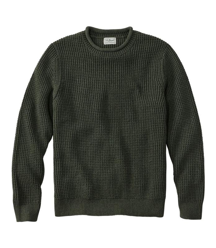 L.L.Bean Men's Organic Cotton Waffle Sweater Rollneck Crew