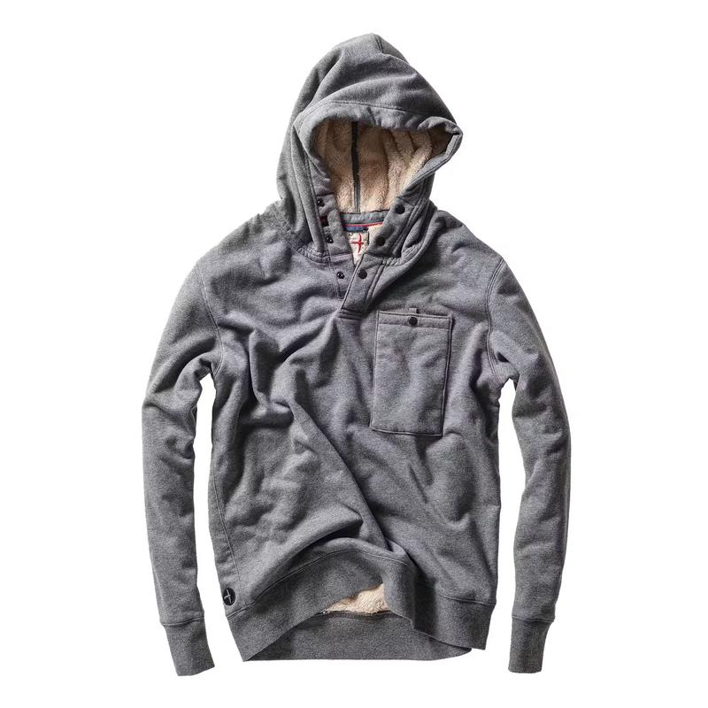 Cotton jersey face with lightweight shaggy pile backside, our iconic Hoodie in superfleece exudes great body and pliancy. Wear over a woven shirt with one snap closed and half-tucked at the waist for an unexpectedly refined look…because anyone can dress a hoodie down.