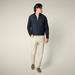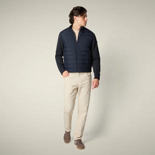 The Sedum model men's jacket delivers a hybrid design, seamlessly combining a quilted front panel with compact knit sleeves and back. Featuring side zip pockets, it's finished with a high ribbed neck for added warmth. Signature details, like the personalized zipper pull and tonal round logo on the left sleeve, provide distinctive branding touches.