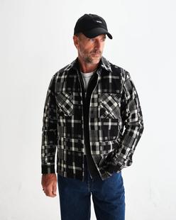 The Wax signature piece. The Whiting, our year-round staple, returns in a new lighter weight glitch check design that mixes black and ecru yarns. Crafted from a fabric made sustainably by a family-run French mill using recycled cotton, this effortlessly wearable overshirt combines timeless style with responsible craftsmanship. Is it a shirt? Is it a mid-layer? Is it a jacket? It's all of those things and much, much more.