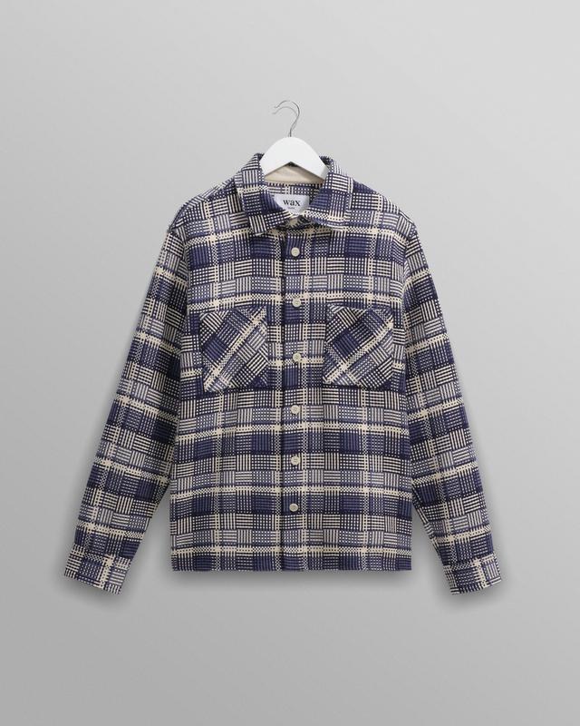 The Wax signature piece. The Whiting, our year-round staple, returns in a new lighter weight basket weave design that mixes blue and ecru yarns. Crafted from a fabric made sustainably by a family-run French mill using recycled cotton, this effortlessly wearable overshirt combines timeless style with responsible craftsmanship. Is it a shirt? Is it a mid-layer? Is it a jacket? It's all of those things and much, much more.