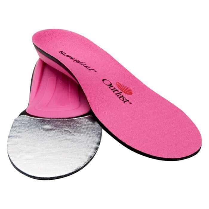 Specifically engineered to fit the unique shape of women's feet and winter footwear, hot PINK provides the support, shock absorption, power transmission and edge control women need to tear up the slopes. The REBOUND foam full length offers maximum forefoot flex, while our patented stabilizer cap gives the rearfoot the stability and alignment it needs to perform at peak potential. In addition to the Outlast® Adaptive Comfort® top cover, the combination of our new Thermo-Foil and AirWeave technology layers in the forefoot efficiently regulates temperature, offering excellent heat management for all-day comfort. Ideal for women's feet with medium to high arches.